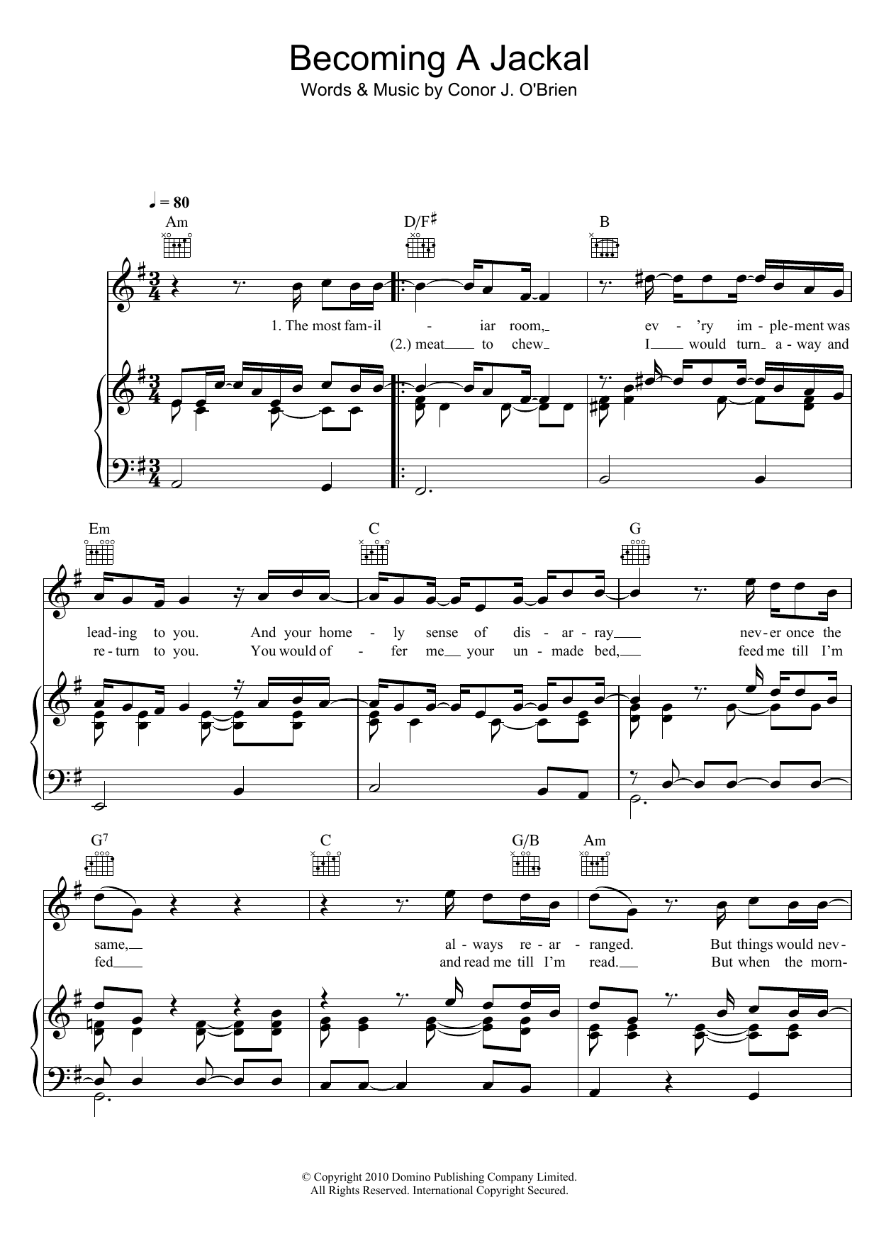 Download or print Villagers Becoming A Jackal sheet music, chords and digital score arranged for Guitar Chords/Lyrics. This Pop score includes 3 page(s).