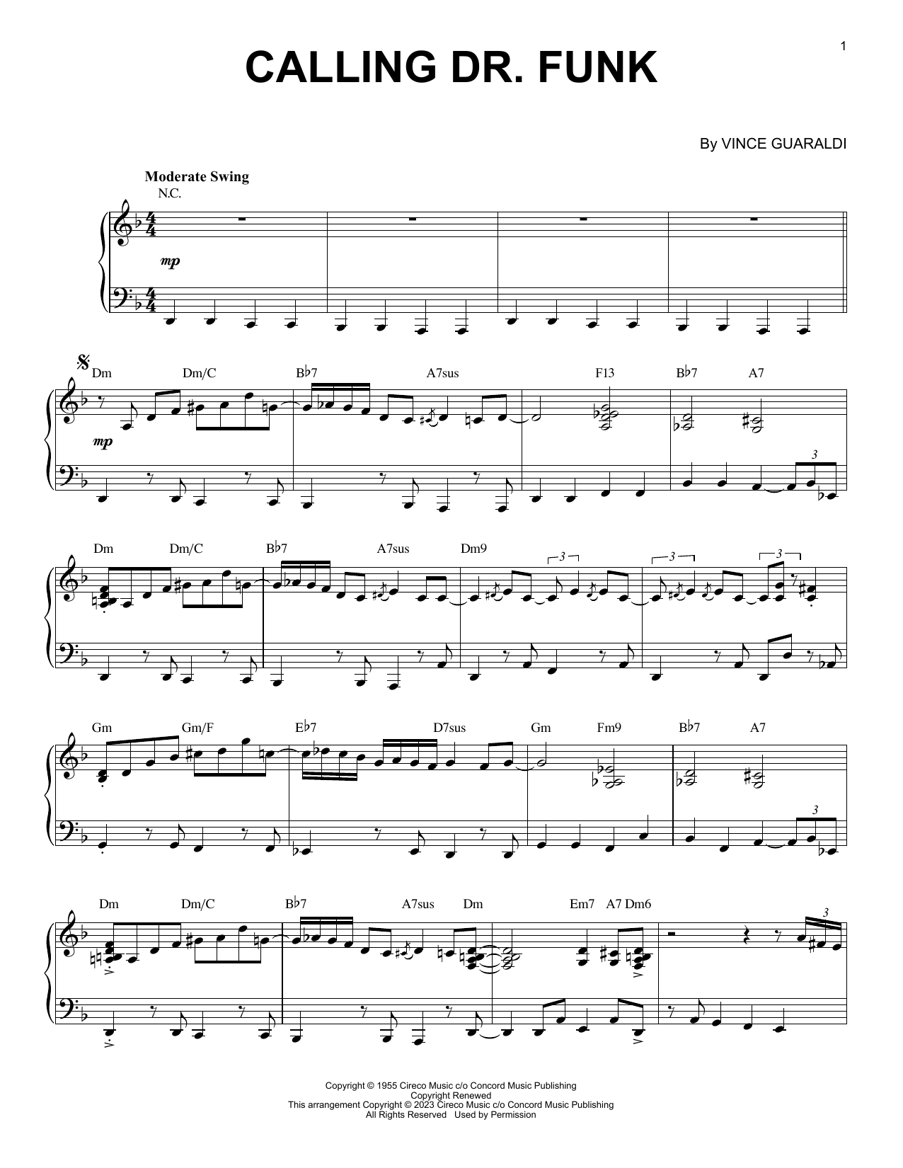 Download or print Vince Guaraldi Calling Dr. Funk [Jazz version] (arr. Brent Edstrom) sheet music, chords and digital score arranged for Piano Solo. This Jazz score includes 5 page(s).