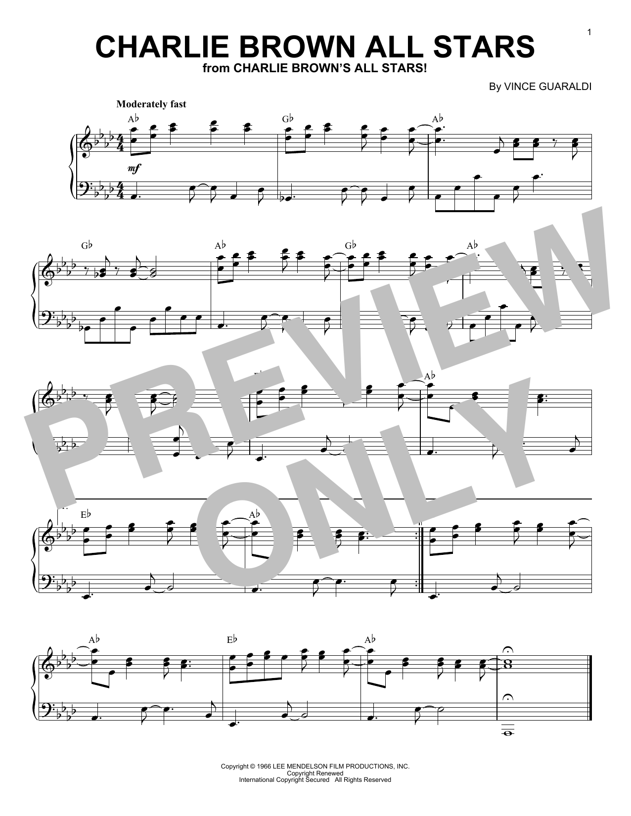 Download or print Vince Guaraldi Charlie Brown All Stars sheet music, chords and digital score arranged for Piano Solo. This Children score includes 1 page(s).