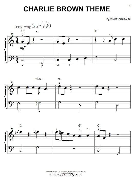 Download or print Vince Guaraldi Charlie Brown Theme sheet music, chords and digital score arranged for Lead Sheet / Fake Book. This Children score includes 1 page(s).