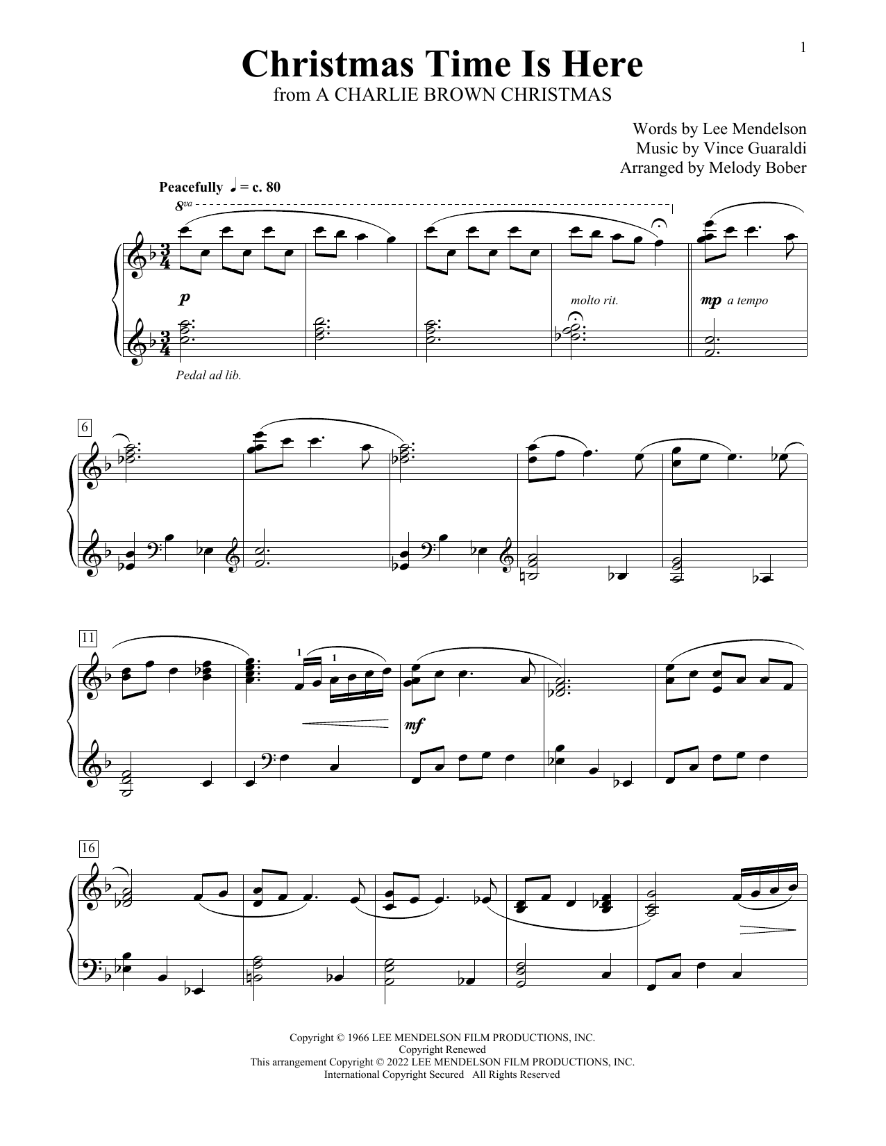 Quick facts Christmas Time Is Here (from A Charlie Brown Christmas) (arr. Melody Bober) about digital sheet music