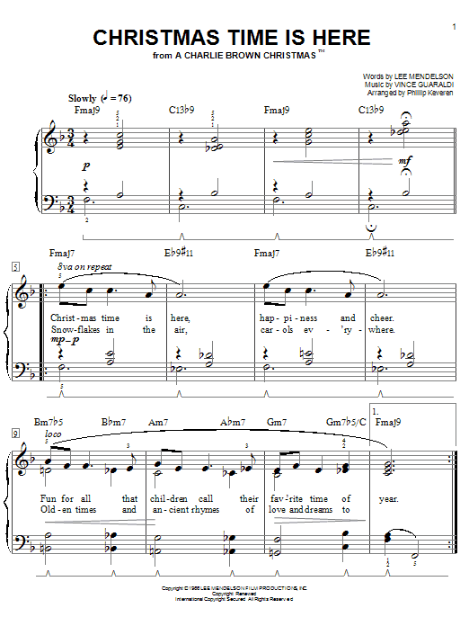 Download or print Vince Guaraldi Christmas Time Is Here [Jazz version] (arr. Phillip Keveren) sheet music, chords and digital score arranged for Piano Solo. This Children score includes 4 page(s).