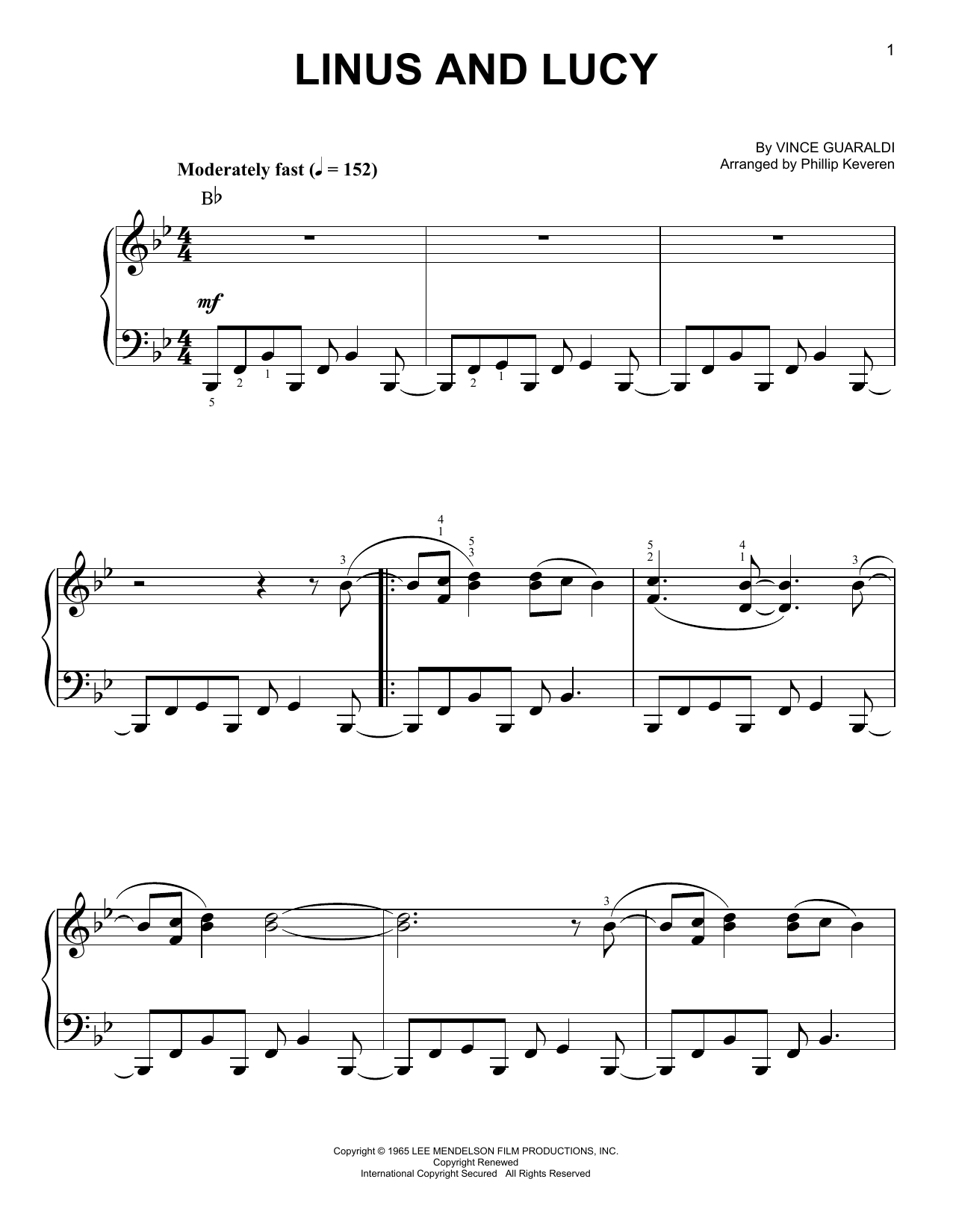 Download or print Phillip Keveren Linus And Lucy (arr. Phillip Keveren) sheet music, chords and digital score arranged for Easy Piano. This Children score includes 4 page(s).