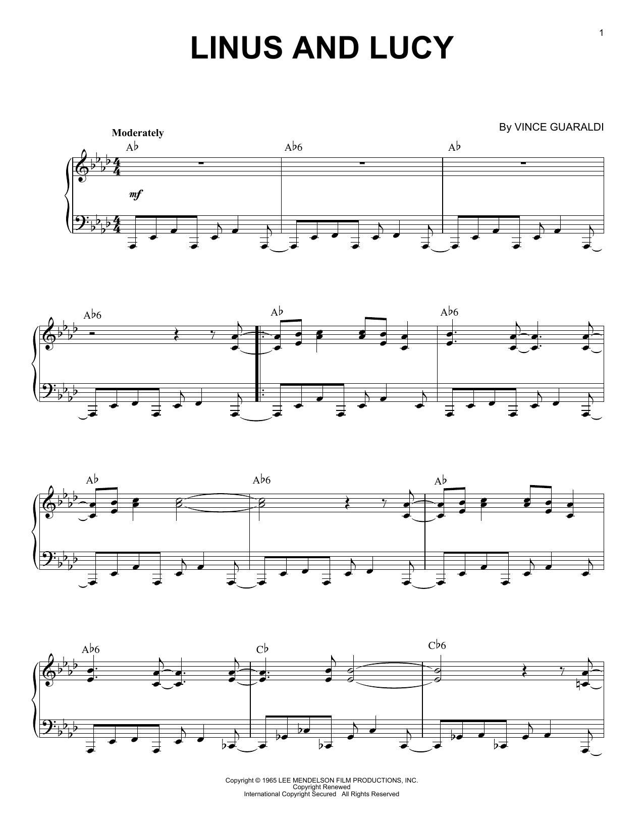 Download or print Vince Guaraldi Linus And Lucy sheet music, chords and digital score arranged for Easy Piano. This Children score includes 3 page(s).