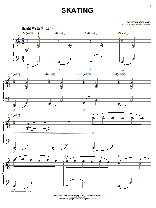 Download or print Vince Guaraldi Skating (arr. Phillip Keveren) sheet music, chords and digital score arranged for Educational Piano. This Children score includes 4 page(s).