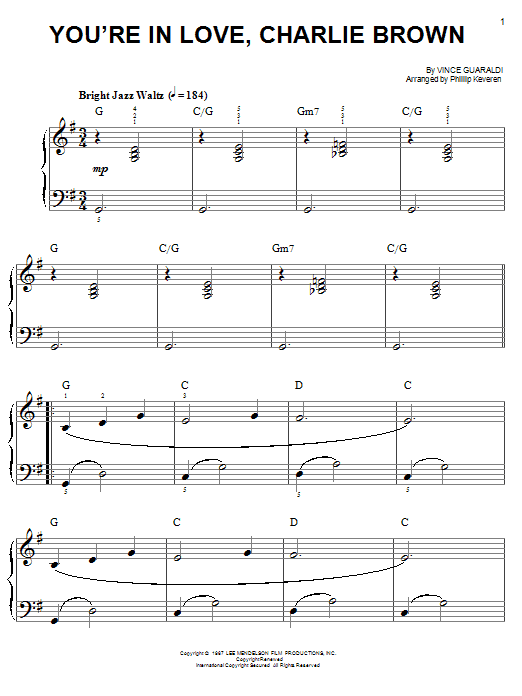 Download or print Vince Guaraldi You're In Love, Charlie Brown (arr. Phillip Keveren) sheet music, chords and digital score arranged for Easy Piano. This Children score includes 4 page(s).