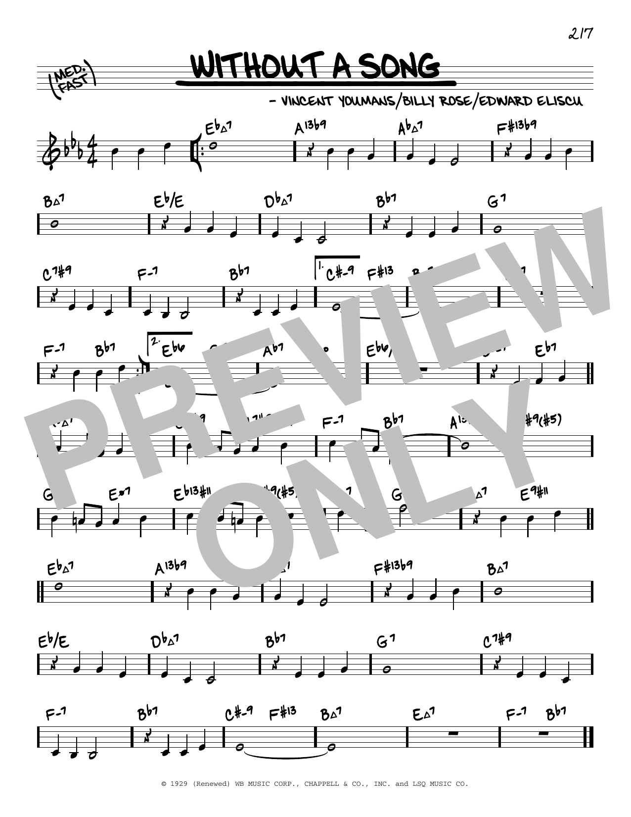 Download or print Vincent Youmans Without A Song (arr. David Hazeltine) sheet music, chords and digital score arranged for Real Book – Enhanced Chords. This Jazz score includes 1 page(s).