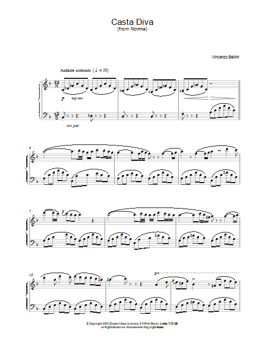 Download or print Vincenzo Bellini Casta Diva sheet music, chords and digital score arranged for Piano & Vocal. This Classical score includes 5 page(s).