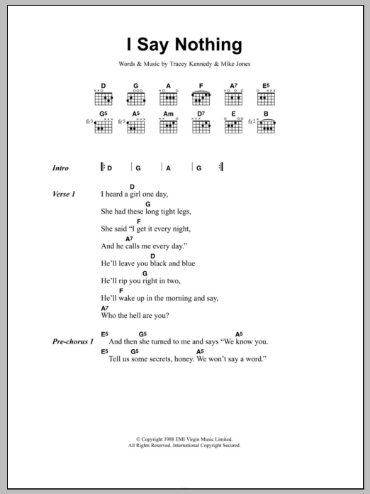 Download or print Voice Of The Beehive I Say Nothing sheet music, chords and digital score arranged for Guitar Chords/Lyrics. This Pop score includes 4 page(s).