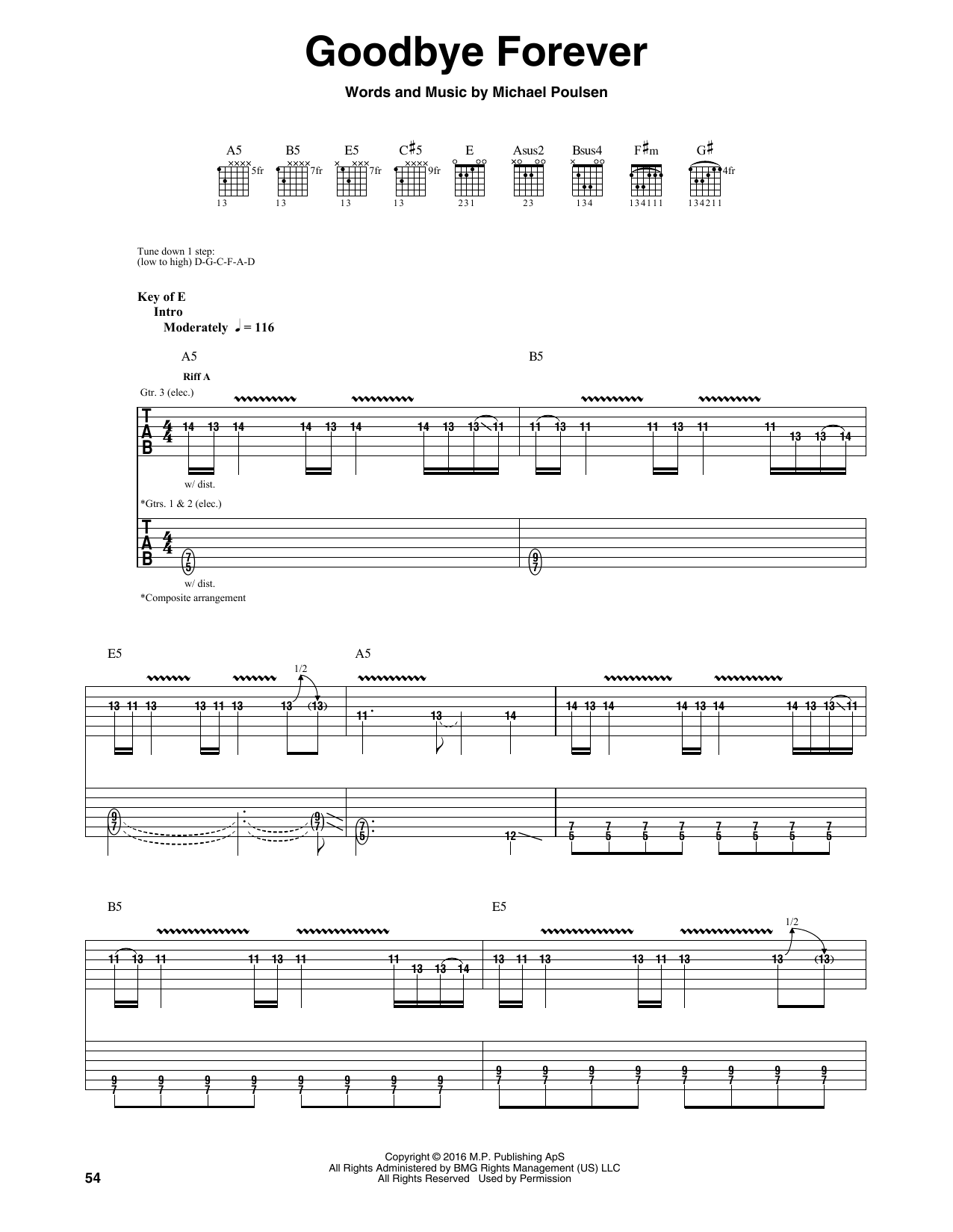Download or print Volbeat Goodbye Forever sheet music, chords and digital score arranged for Guitar Rhythm Tab. This Pop score includes 8 page(s).