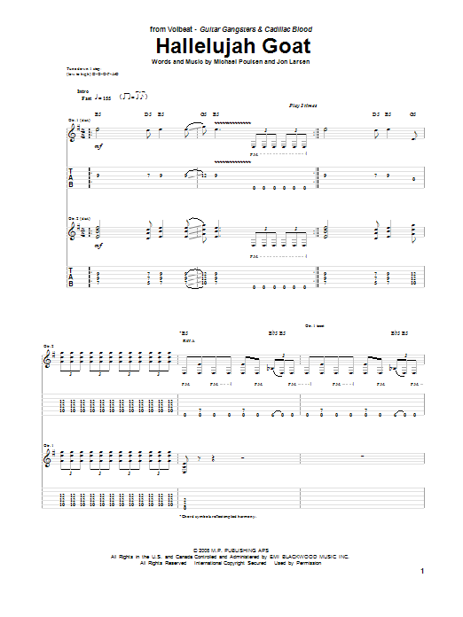 Download or print Volbeat Hallelujah Goat sheet music, chords and digital score arranged for Guitar Tab. This Metal score includes 8 page(s).