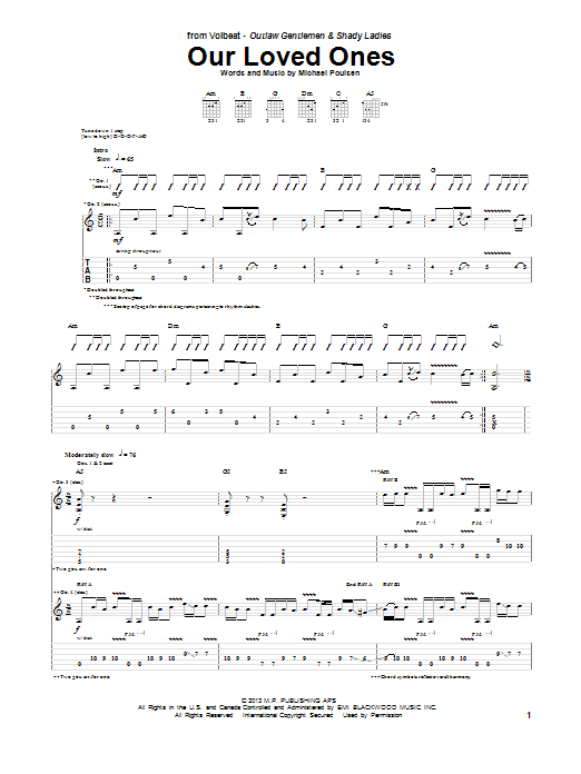 Download or print Volbeat Our Loved Ones sheet music, chords and digital score arranged for Guitar Tab. This Pop score includes 8 page(s).