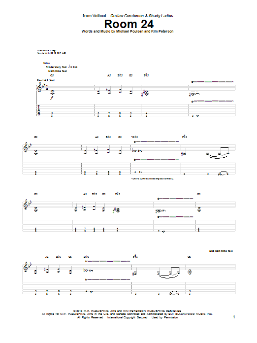 Download or print Volbeat Room 24 sheet music, chords and digital score arranged for Guitar Tab. This Pop score includes 11 page(s).