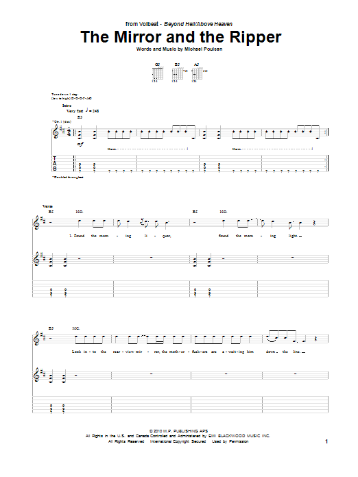 Download or print Volbeat The Mirror And The Ripper sheet music, chords and digital score arranged for Guitar Tab. This Metal score includes 12 page(s).