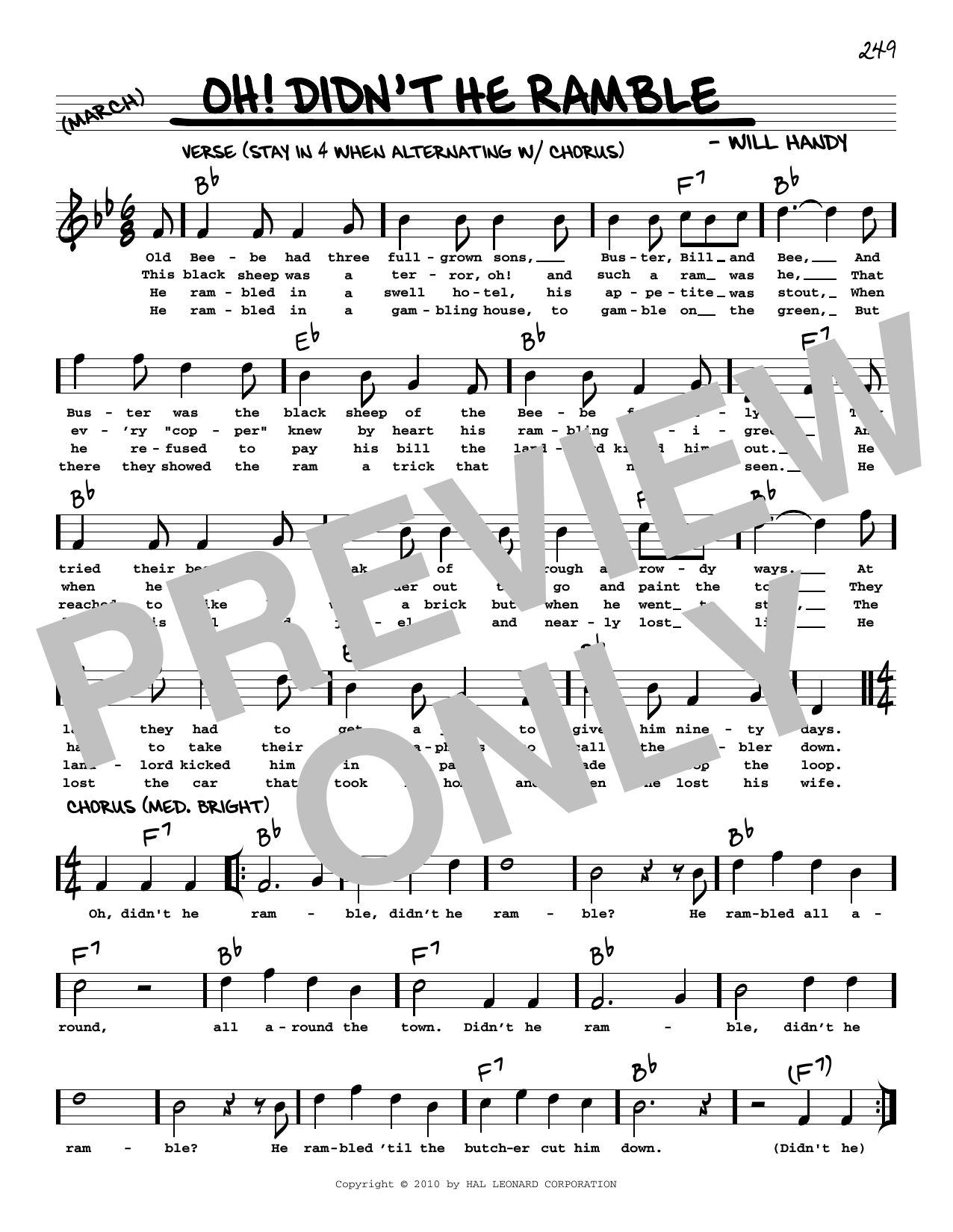 Download or print W.C. Handy Oh! Didn't He Ramble (arr. Robert Rawlins) sheet music, chords and digital score arranged for Real Book – Melody, Lyrics & Chords. This Jazz score includes 1 page(s).