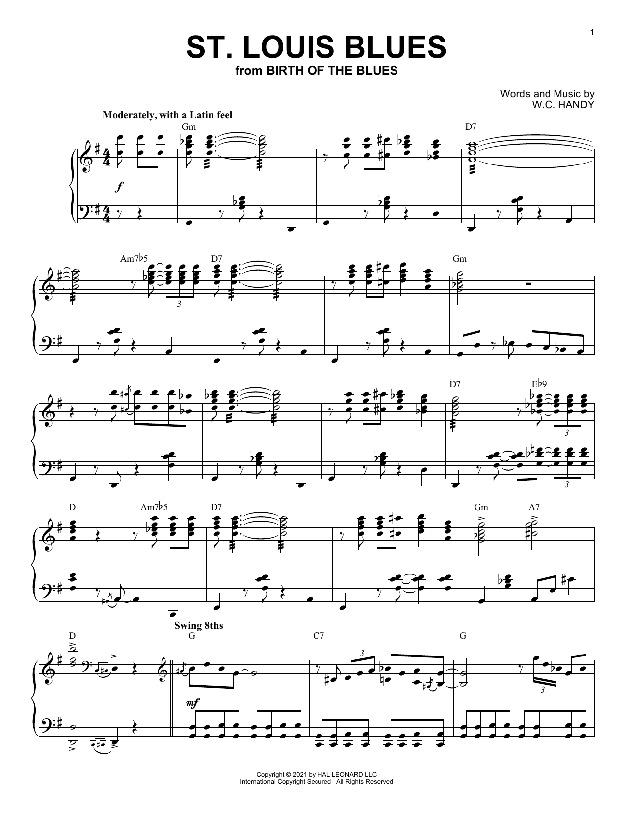 Download or print W.C. Handy St. Louis Blues (arr. Brent Edstrom) sheet music, chords and digital score arranged for Piano Solo. This Jazz score includes 4 page(s).