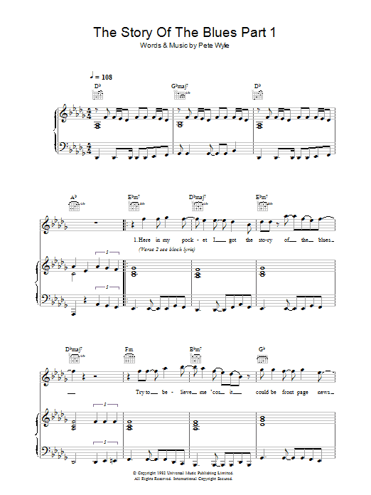 Download or print Wah! The Story Of The Blues Part 1 sheet music, chords and digital score arranged for Piano, Vocal & Guitar Chords. This Pop score includes 5 page(s).