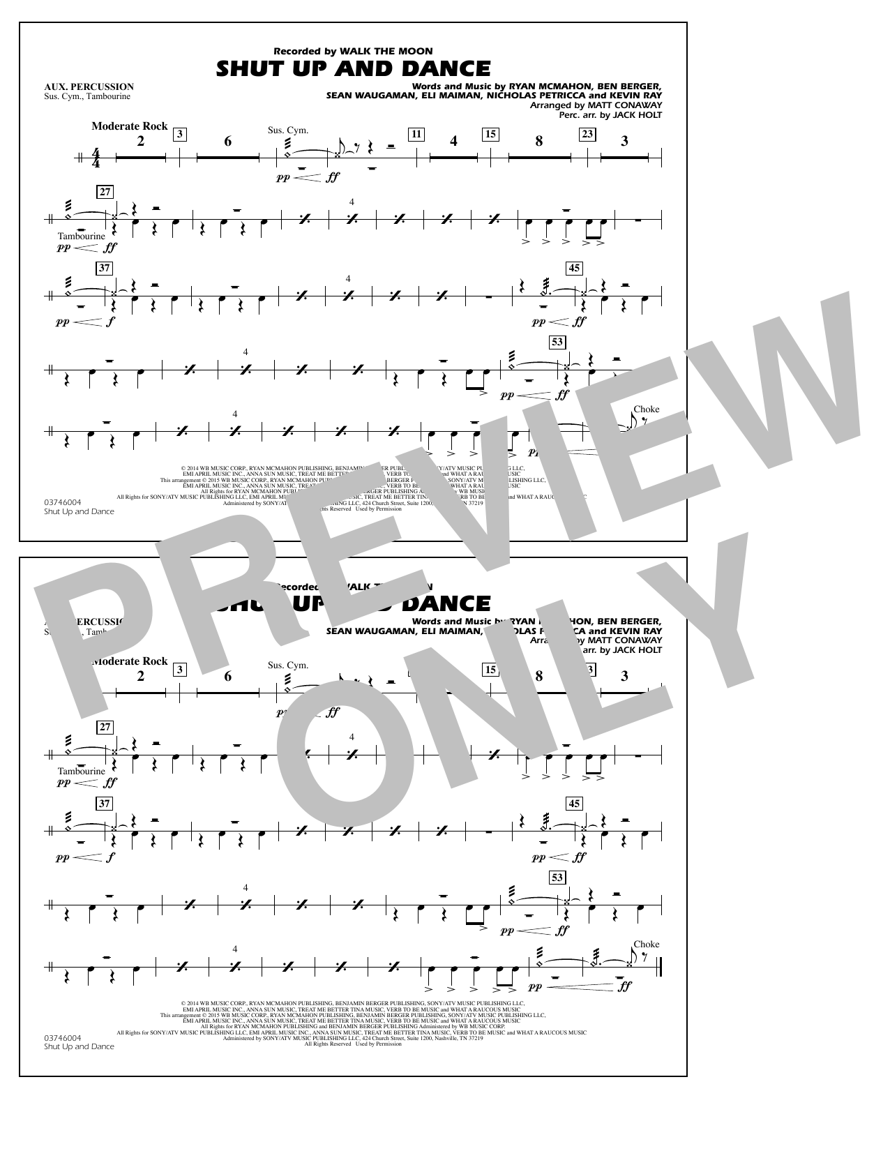 Quick facts Shut Up and Dance (Arr. Matt Conaway) - Aux Percussion about digital sheet music