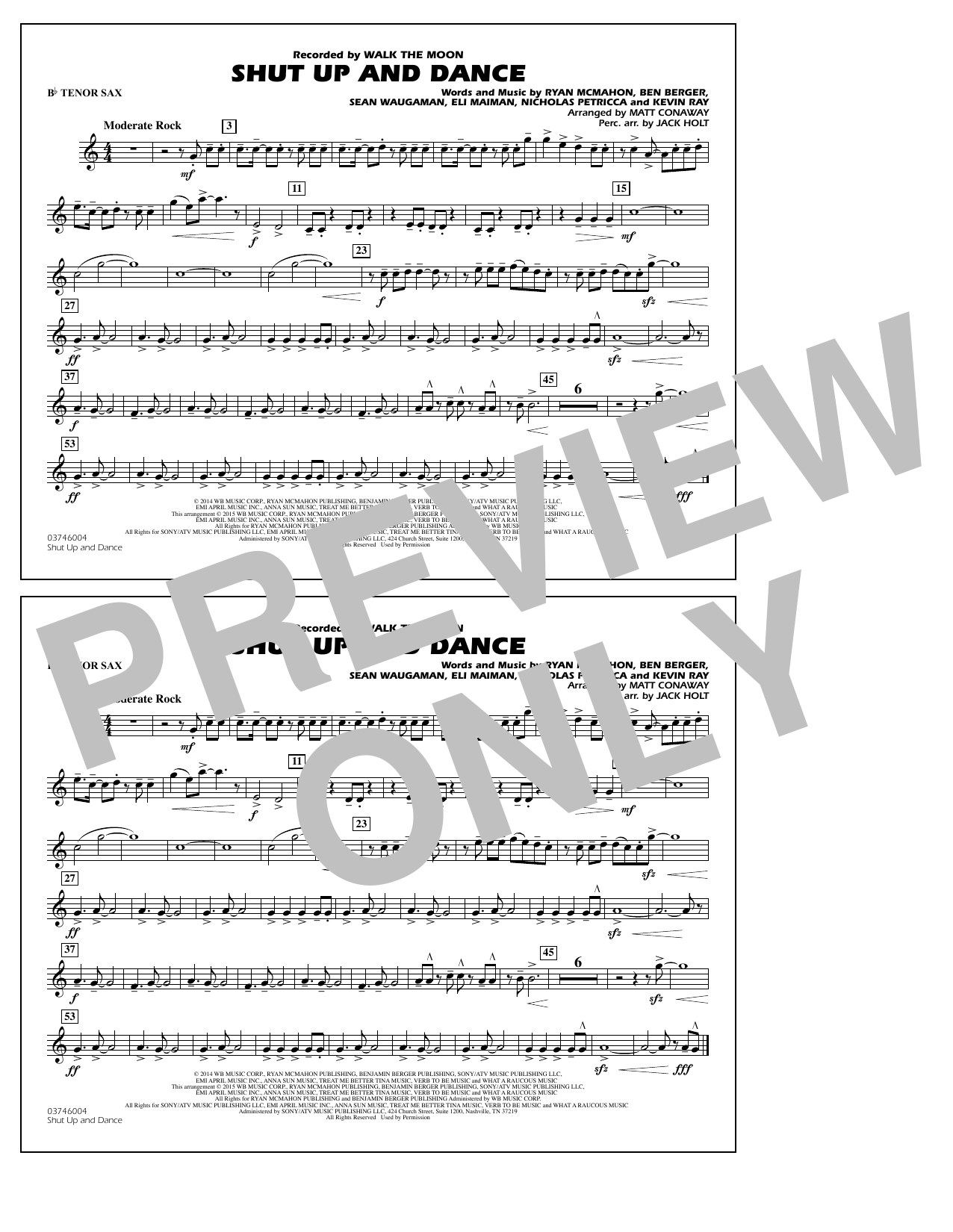 Download or print Walk The Moon Shut Up and Dance (Arr. Matt Conaway) - Bb Tenor Sax sheet music, chords and digital score arranged for Marching Band. This Pop score includes 1 page(s).