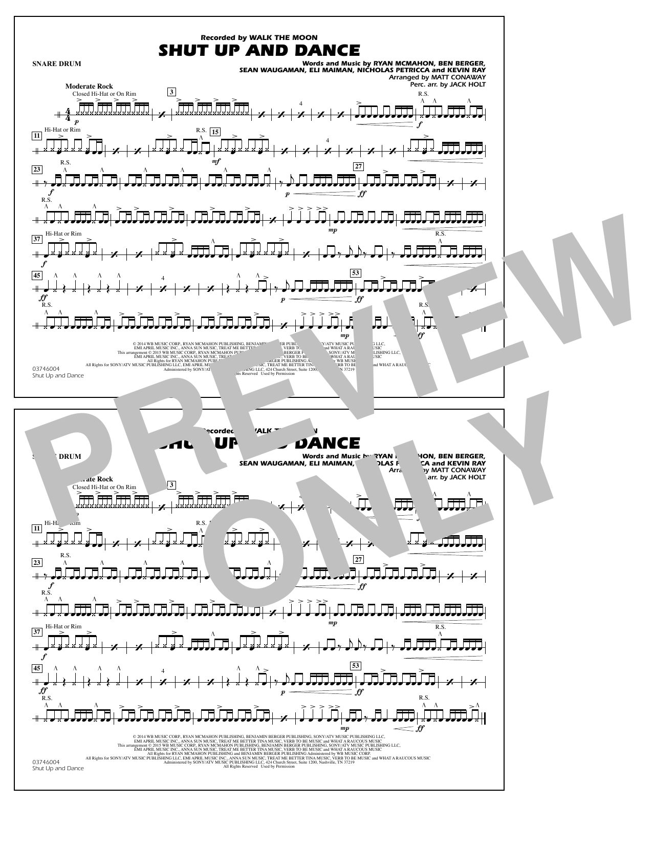 Quick facts Shut Up and Dance (Arr. Matt Conaway) - Snare Drum about digital sheet music