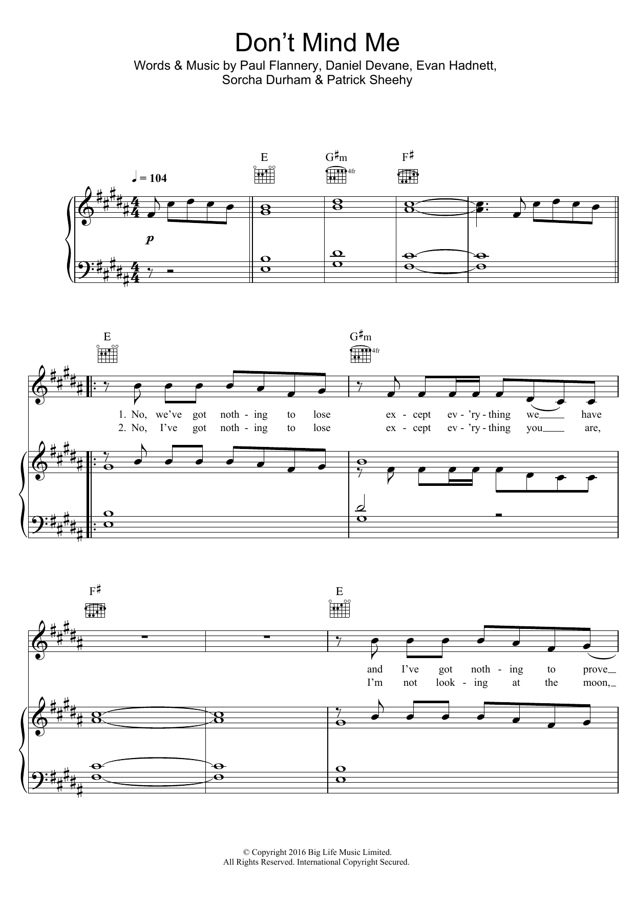 Download or print Walking On Cars Don't Mind Me sheet music, chords and digital score arranged for Piano, Vocal & Guitar Chords. This Pop score includes 6 page(s).