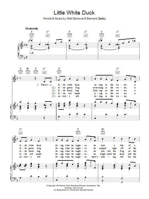 Download or print Walt Barrows Little White Duck sheet music, chords and digital score arranged for Piano, Vocal & Guitar Chords. This Standards score includes 2 page(s).