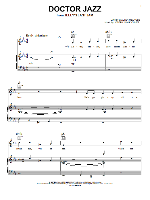Download or print Walter Melrose Doctor Jazz sheet music, chords and digital score arranged for Piano, Vocal & Guitar Chords (Right-Hand Melody). This Jazz score includes 10 page(s).