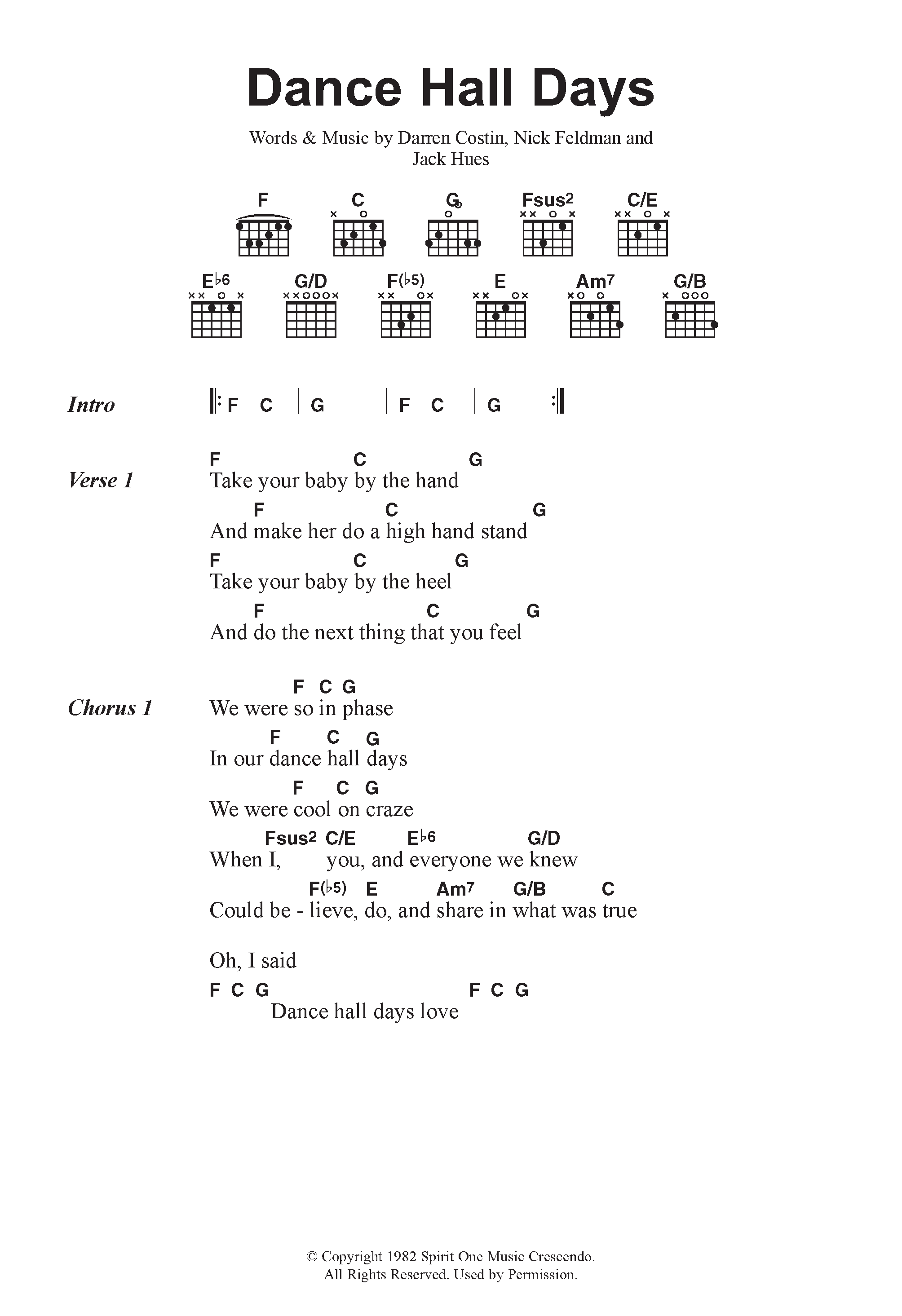 Download or print Wang Chung Dance Hall Days sheet music, chords and digital score arranged for Guitar Chords/Lyrics. This Rock score includes 2 page(s).