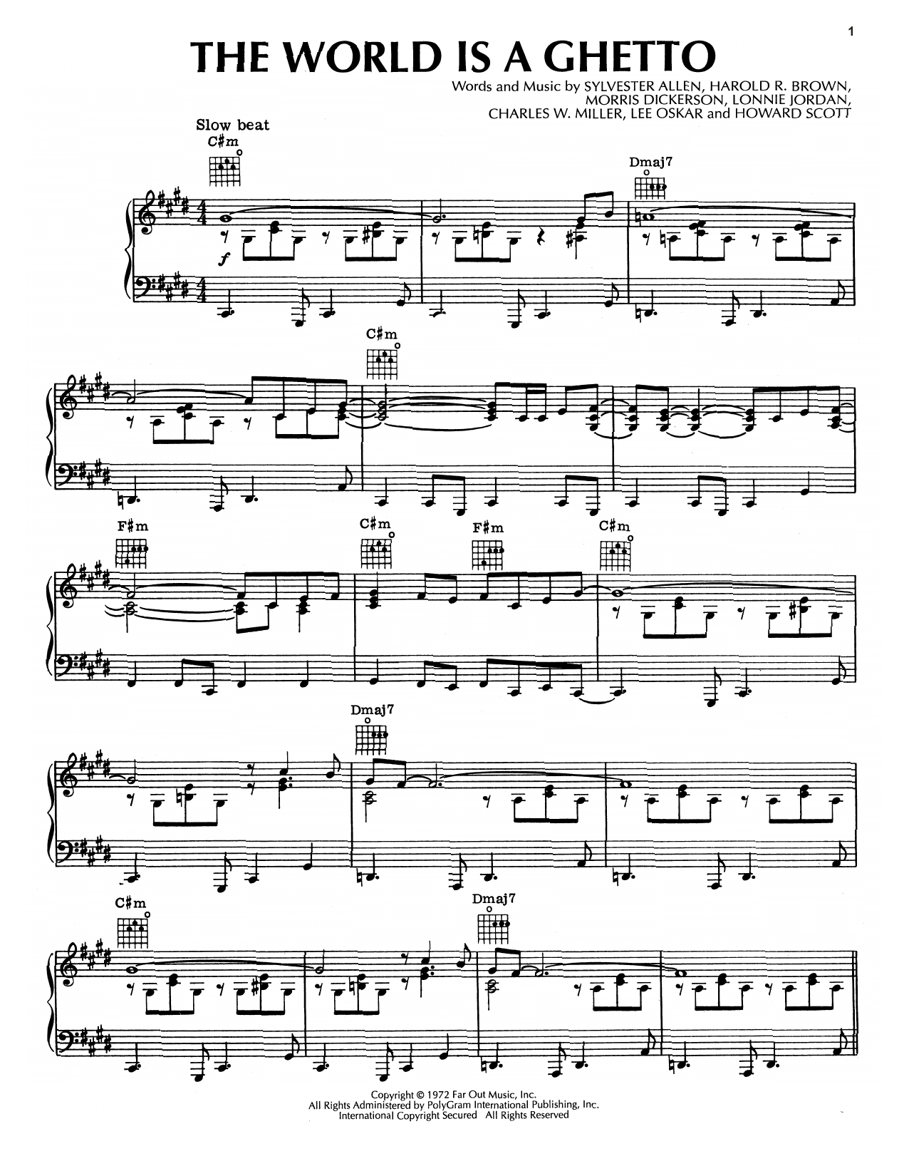Download or print War The World Is A Ghetto sheet music, chords and digital score arranged for Piano, Vocal & Guitar Chords (Right-Hand Melody). This Funk score includes 4 page(s).