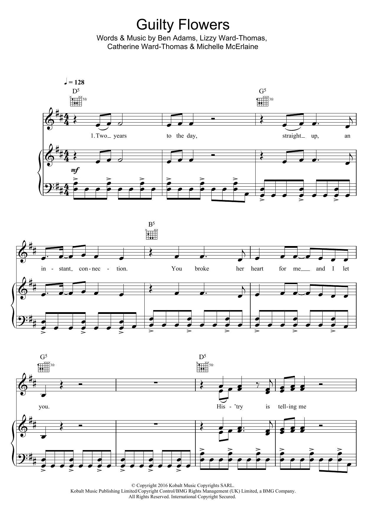 Download or print Ward Thomas Guilty Flowers sheet music, chords and digital score arranged for Piano, Vocal & Guitar Chords. This Country score includes 9 page(s).