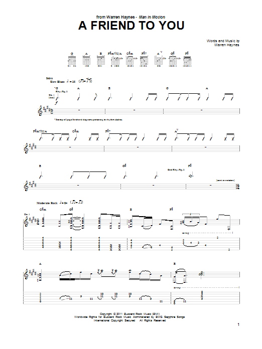 Download or print Warren Haynes A Friend To You sheet music, chords and digital score arranged for Guitar Tab. This Blues score includes 10 page(s).