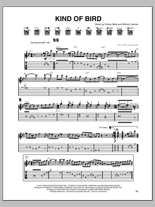 Download or print Warren Haynes Kind Of Bird sheet music, chords and digital score arranged for Guitar Tab. This Blues score includes 11 page(s).
