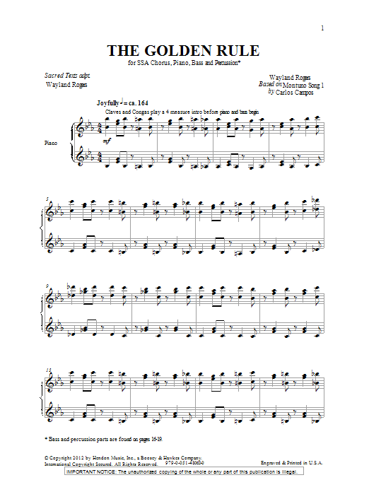 Download or print Wayland Rogers The Golden Rule sheet music, chords and digital score arranged for SSA Choir. This Pop score includes 17 page(s).
