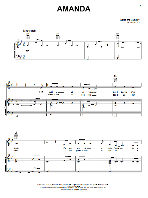 Download or print Waylon Jennings Amanda sheet music, chords and digital score arranged for Piano, Vocal & Guitar Chords (Right-Hand Melody). This Country score includes 4 page(s).