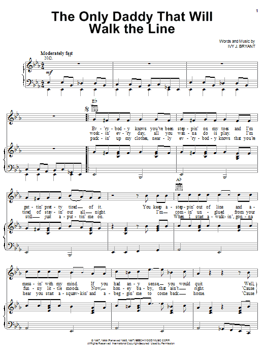 Quick facts The Only Daddy That Will Walk The Line about digital sheet music