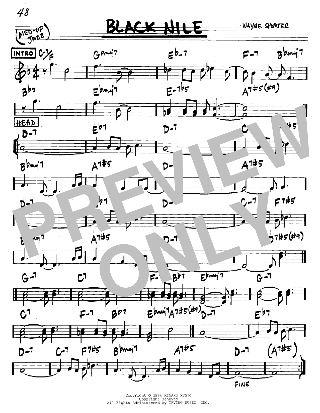 Download or print Wayne Shorter Black Nile sheet music, chords and digital score arranged for Real Book – Melody & Chords – C Instruments. This Jazz score includes 1 page(s).