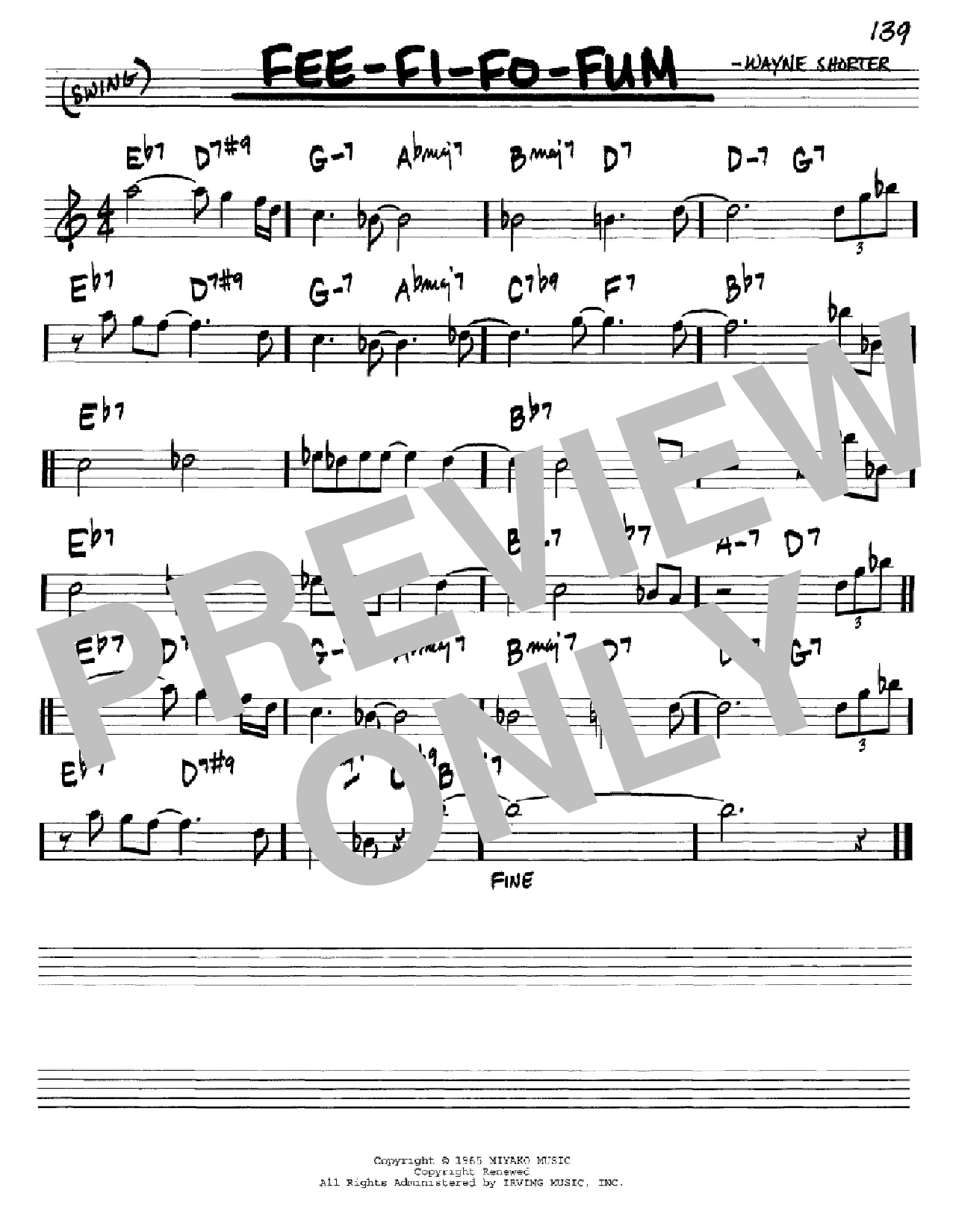 Download or print Wayne Shorter Fee-Fi-Fo-Fum sheet music, chords and digital score arranged for Real Book – Melody & Chords – C Instruments. This Jazz score includes 1 page(s).