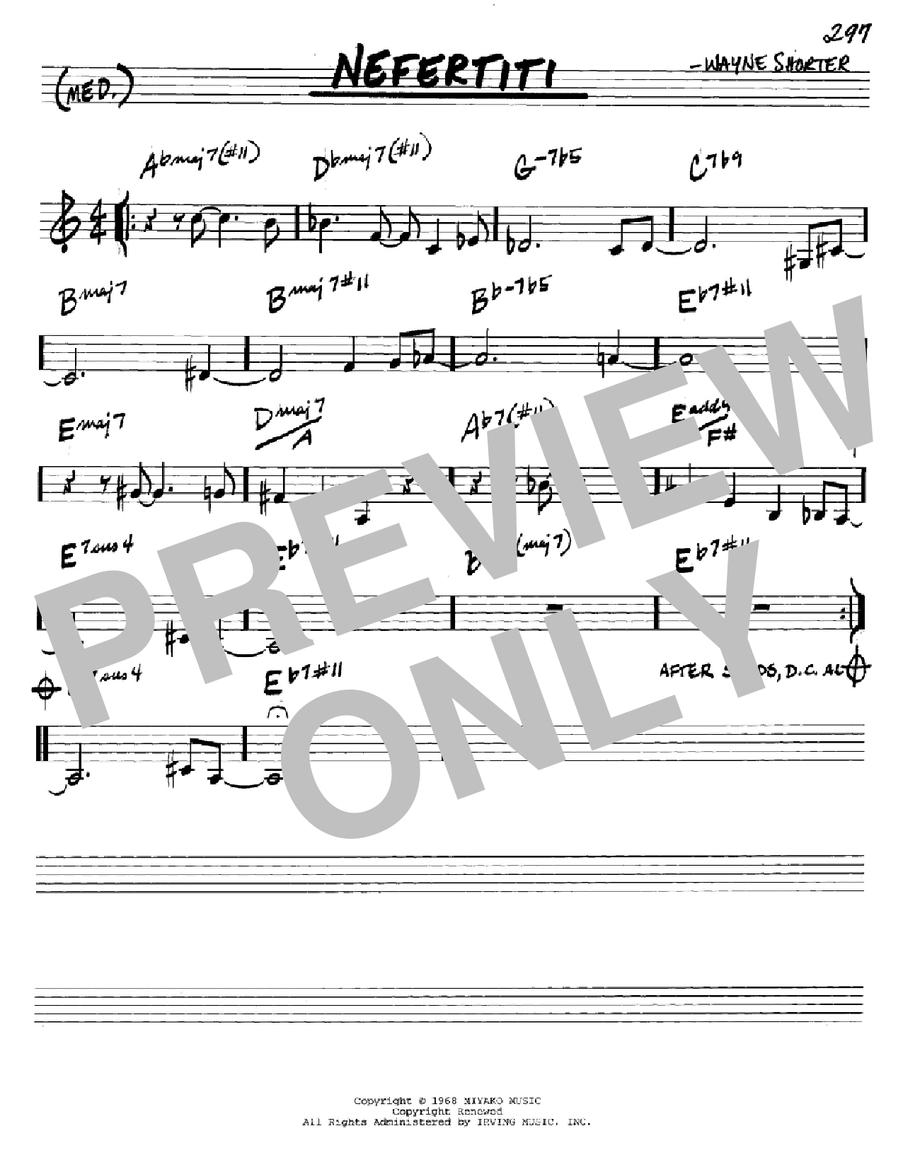 Download or print Wayne Shorter Nefertiti sheet music, chords and digital score arranged for Real Book – Melody & Chords – C Instruments. This Jazz score includes 1 page(s).