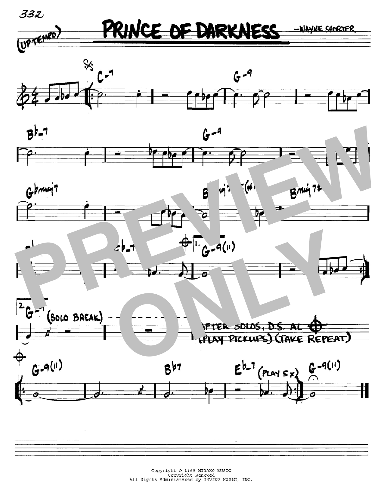 Download or print Wayne Shorter Prince Of Darkness sheet music, chords and digital score arranged for Real Book – Melody & Chords – Eb Instruments. This Jazz score includes 1 page(s).