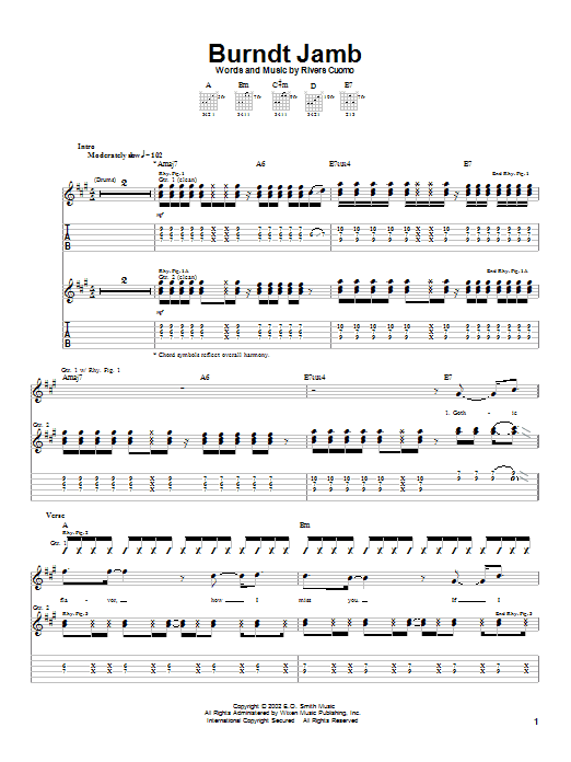 Download or print Weezer Burndt Jamb sheet music, chords and digital score arranged for Guitar Tab. This Rock score includes 5 page(s).