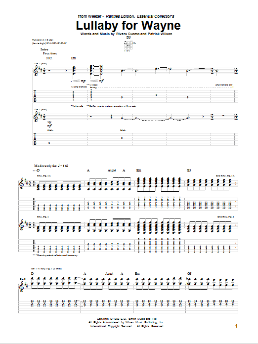 Download or print Weezer Lullaby For Wayne sheet music, chords and digital score arranged for Guitar Tab. This Alternative score includes 9 page(s).