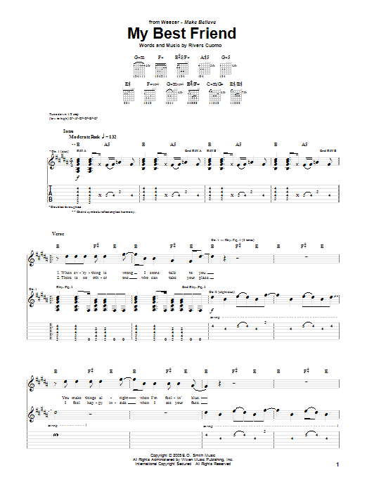 Download or print Weezer My Best Friend sheet music, chords and digital score arranged for Guitar Tab. This Alternative score includes 4 page(s).