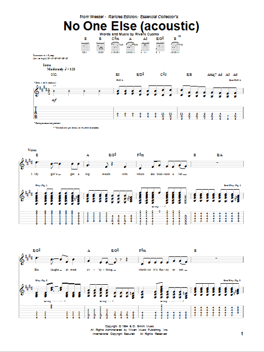 Download or print Weezer No One Else sheet music, chords and digital score arranged for Guitar Tab. This Alternative score includes 5 page(s).