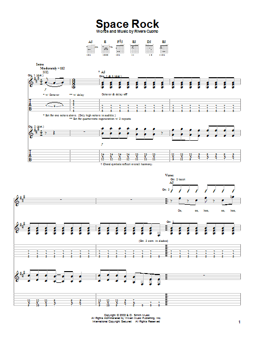 Download or print Weezer Space Rock sheet music, chords and digital score arranged for Guitar Tab. This Rock score includes 4 page(s).