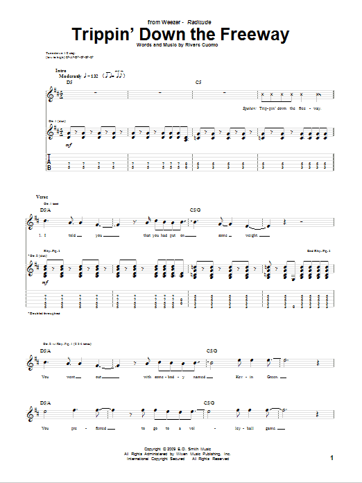Download or print Weezer Trippin' Down The Freeway sheet music, chords and digital score arranged for Guitar Tab. This Alternative score includes 7 page(s).