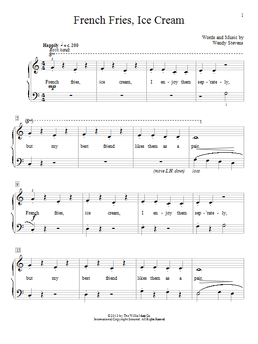 Download or print Wendy Stevens French Fries, Ice Cream sheet music, chords and digital score arranged for Educational Piano. This Children score includes 2 page(s).