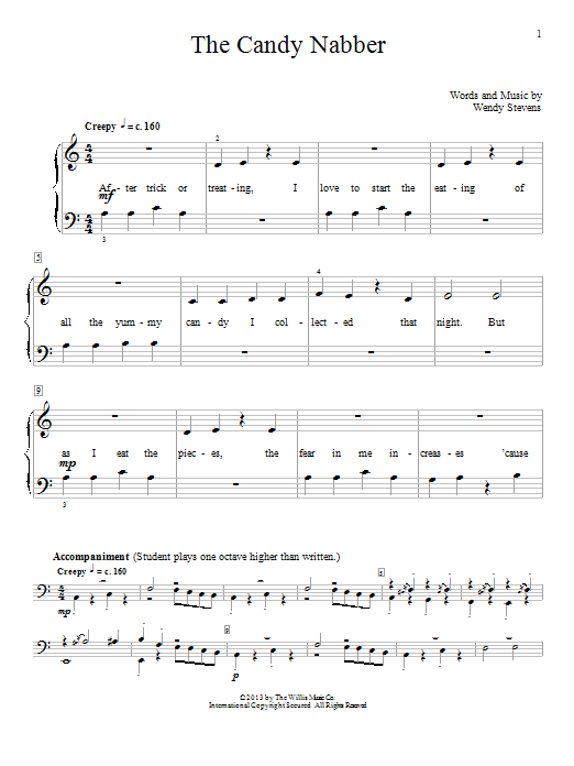 Download or print Wendy Stevens The Candy Nabber sheet music, chords and digital score arranged for Educational Piano. This Halloween score includes 2 page(s).