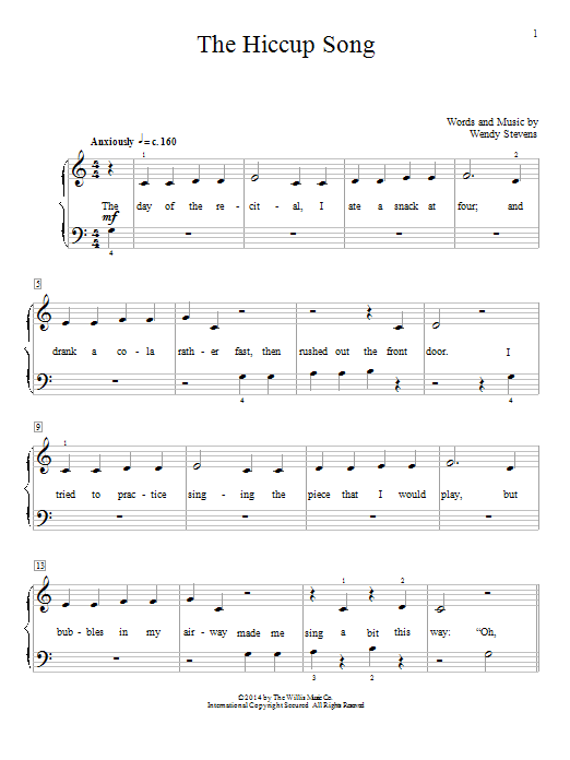 Download or print Wendy Stevens The Hiccup Song sheet music, chords and digital score arranged for Educational Piano. This Children score includes 2 page(s).