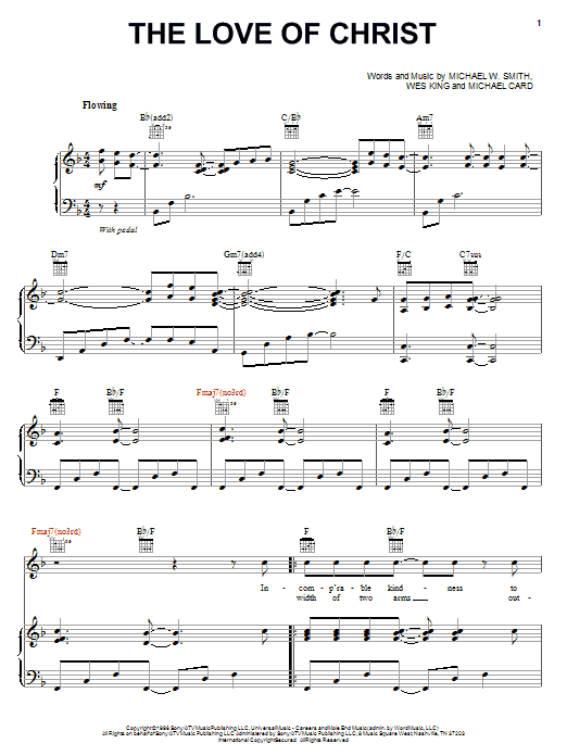 Download or print Wes King The Love Of Christ sheet music, chords and digital score arranged for Piano, Vocal & Guitar Chords (Right-Hand Melody). This Christian score includes 6 page(s).
