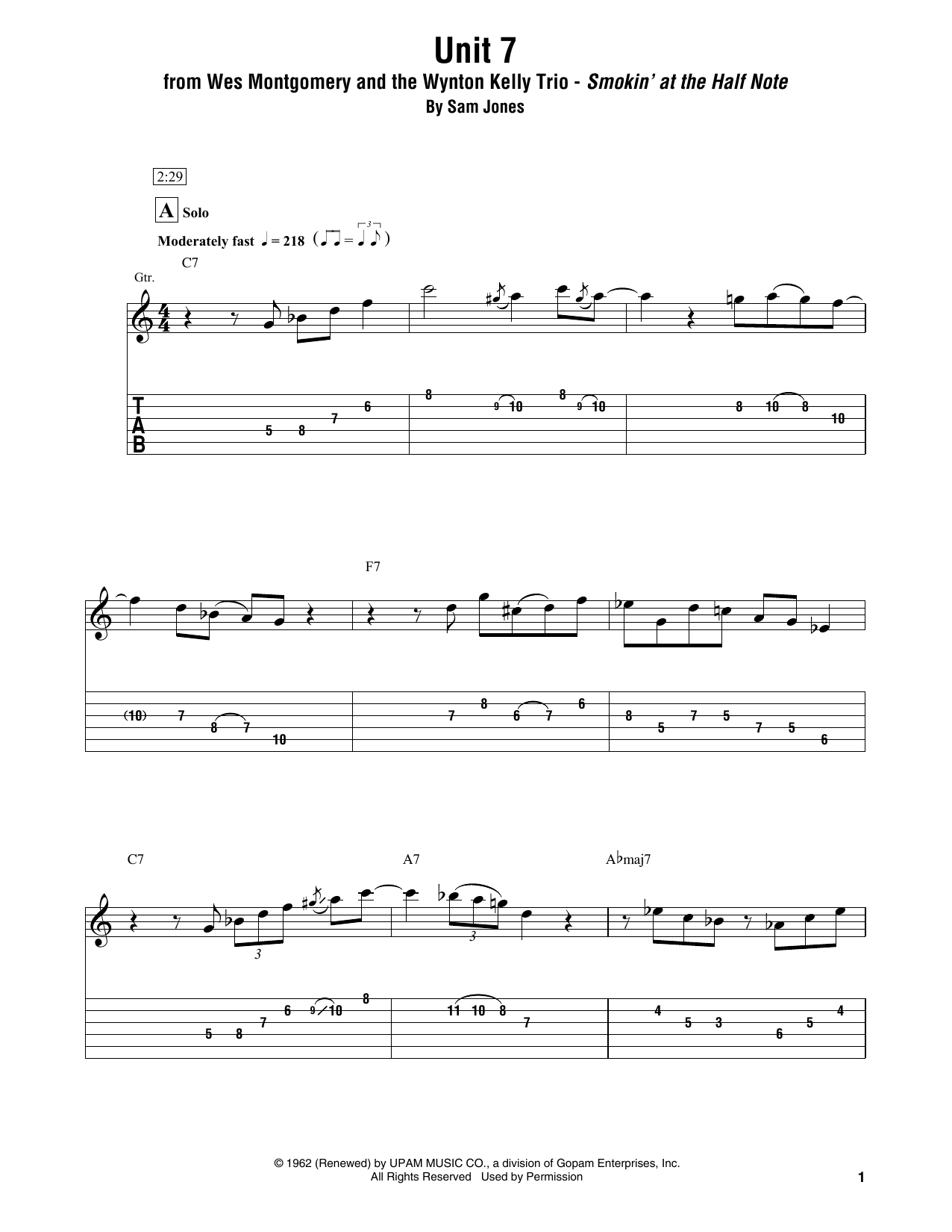 Download or print Wes Montgomery and the Wynton Kelly Trio Unit 7 sheet music, chords and digital score arranged for Electric Guitar Transcription. This Jazz score includes 14 page(s).